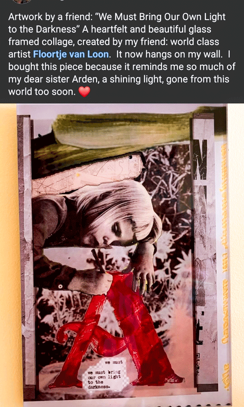 I will be reminded of my dear sister every time I look at it. You are a world class artist.